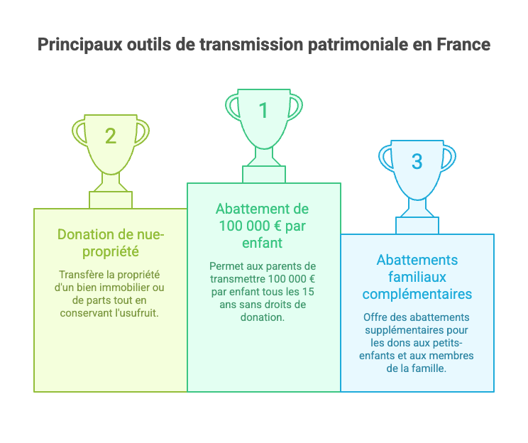 - Une transmission échelonnée (tous les 15 ans) optimise la fiscalité et protège le patrimoine familial sur la durée.